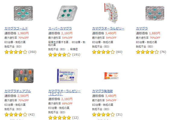 カマグラやカマグラゴールドは国内で承認されていないED治療薬ですので、ドラッグストアや病院では購入できません。そのため、カマグラゴールドでED(勃起不全)の治療を行いたい男性は、ネット通販サイト(個人輸入代行サイト)を利用しましょう。